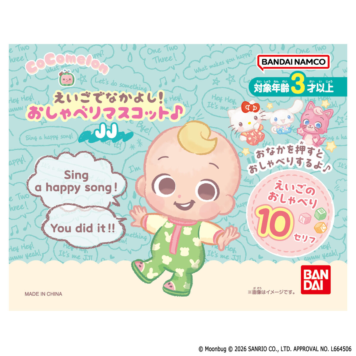 英語の歌やダンスを通して楽しく学べる、世界中で人気の幼児向けコンテンツ・CoComelonとサンリオキャラクターズのコラボレーションアニメ「CoComelon Playdates with Sanrio Friends」から、お腹を押すと英語のおしゃべりをするぬいぐるみが登場!!楽しいおしゃべりを10種類搭載。