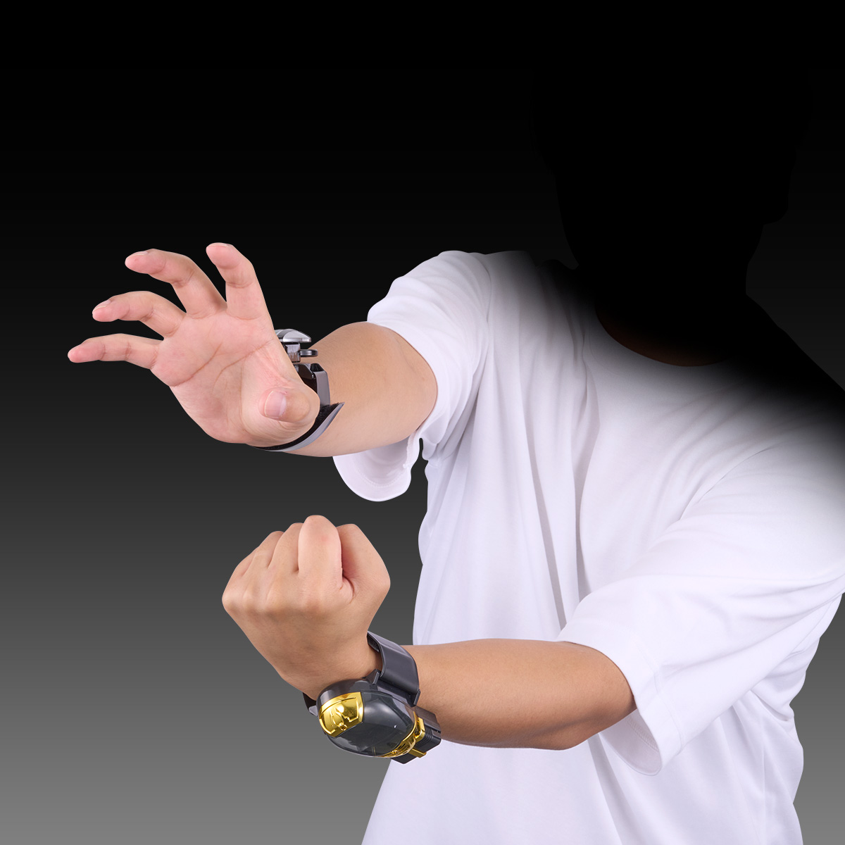 オーラスプレッダーには新たに「気力ボタン」を搭載。左の掌に右の拳を合わせるポーズでボタンを押下、「天火星 稲妻炎上破」をはじめとする各キャラクターの必殺技が発動可能です。モーションセンサを内蔵しており、腕を突き出す動きで打撃アクションも可能です。