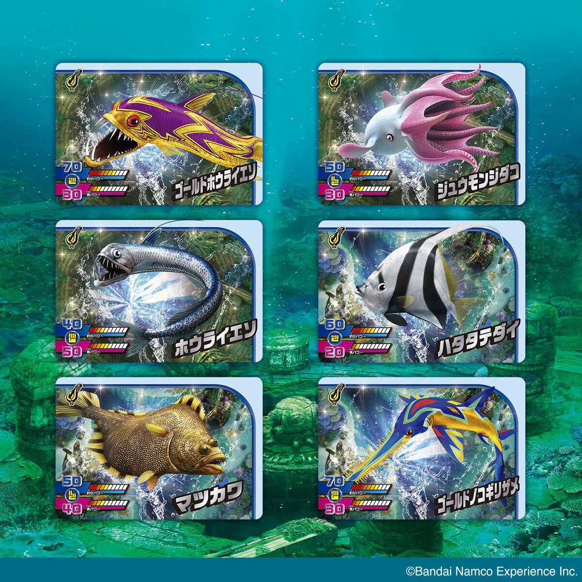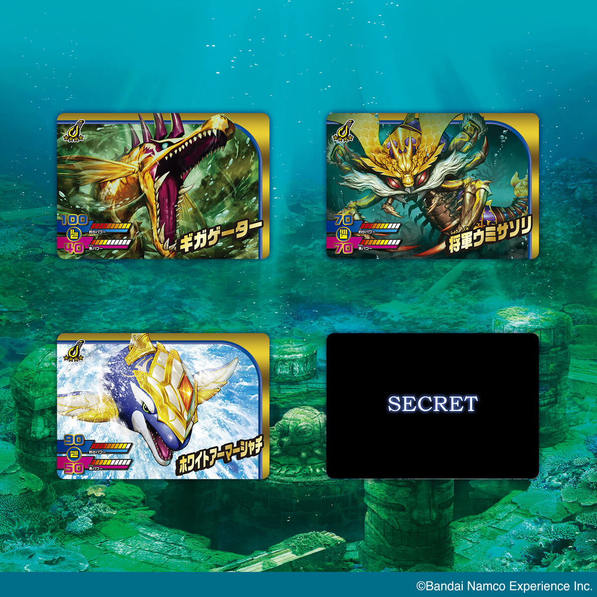 ゲームセンターで人気の『釣りスピリッツ ワンダー』のカードダスVol.2が登場!!ゴールドプリズム、アートレア、シークレットのカードの裏面にはギガゲーターが呼び出せる二次元コード付き!!レアカードでしか挑戦できない、超レアなギガゲーターを釣り上げよう!