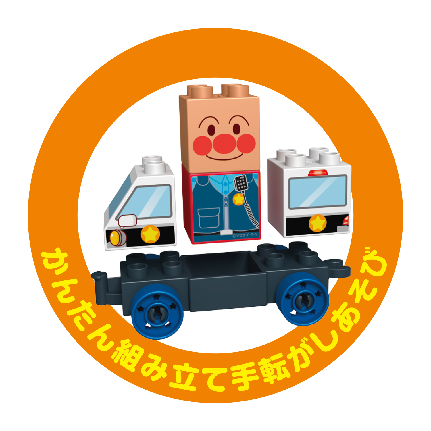 小さなお子さまでも簡単に組み立てて、手転がし遊びができるアンパンマンとパトロールカーのブロックセットです。