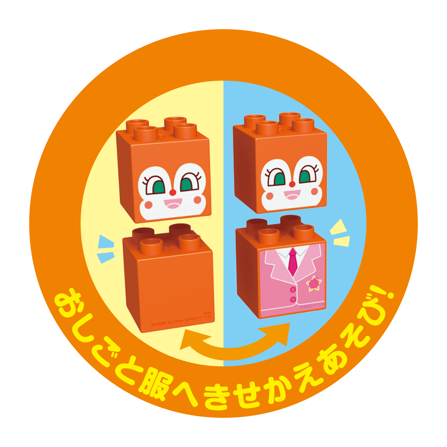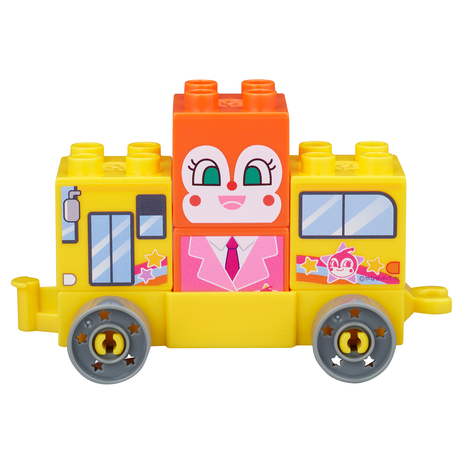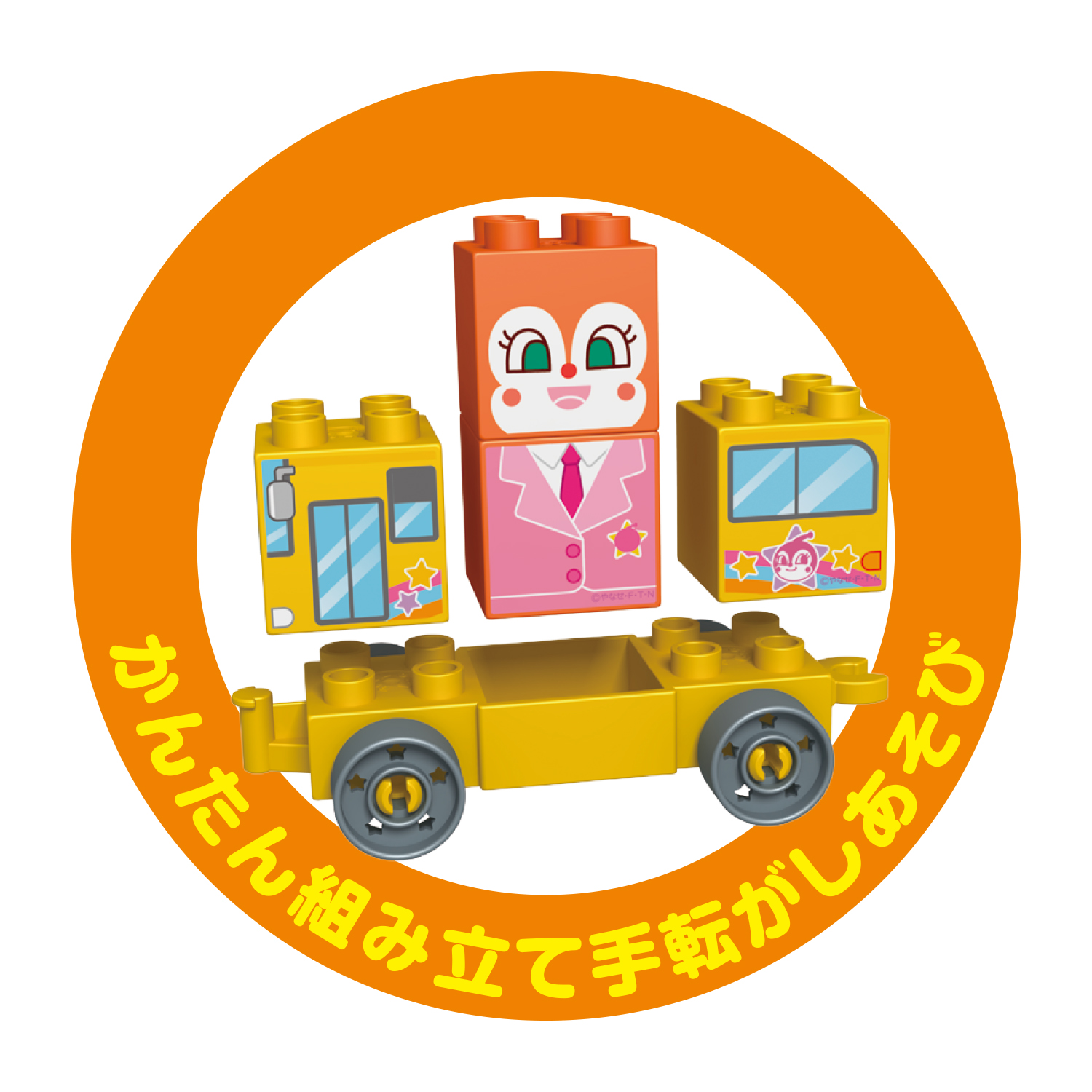小さなお子さまでも簡単に組み立てて、手転がし遊びができるドキンちゃんとスクールバスのブロックセットです。