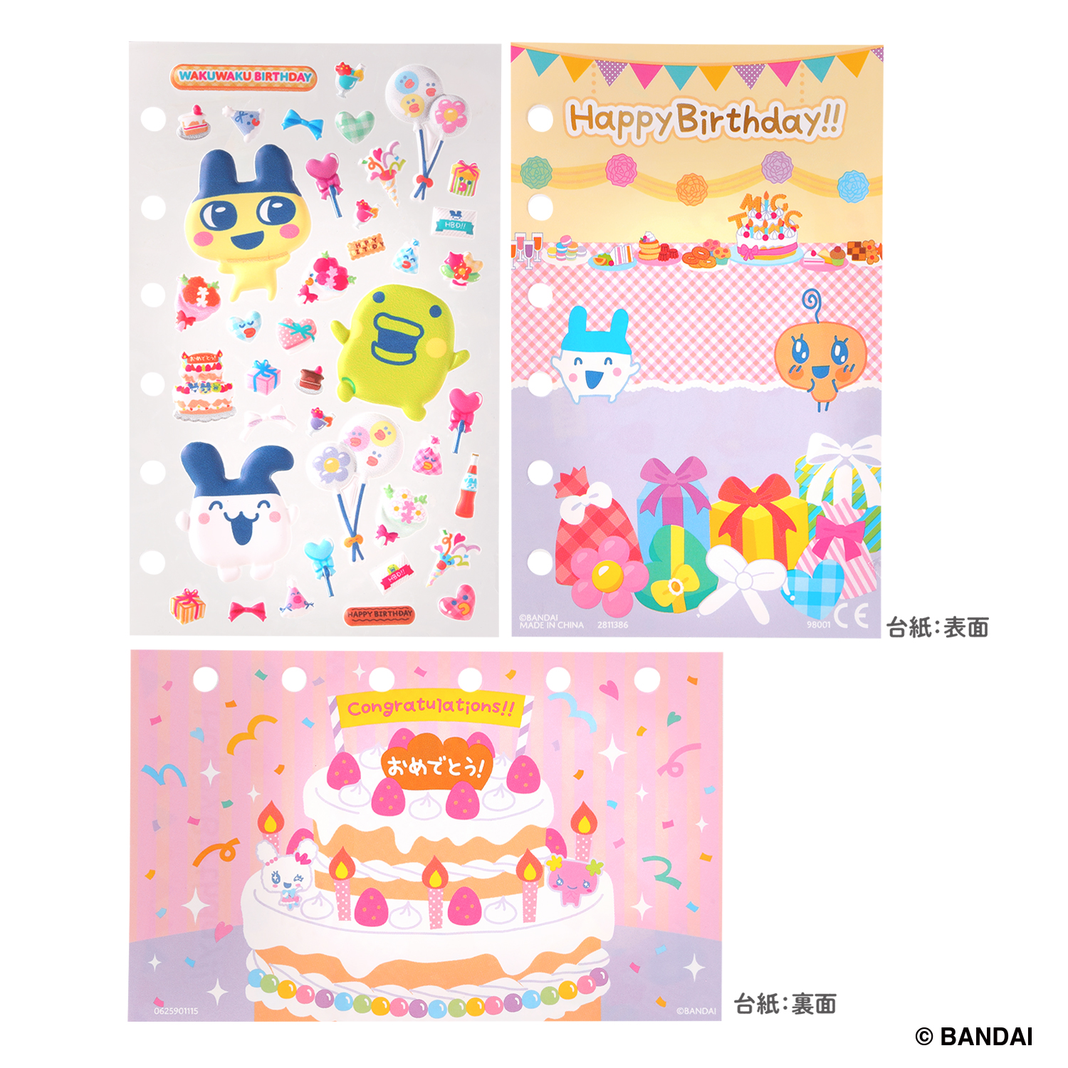 たまごっちのシールや台紙にアイテムのシールを重ねて自分流にアレンジする「たまもり」が楽しめる、貼ってはがせるぷっくりシールと台紙のセット!