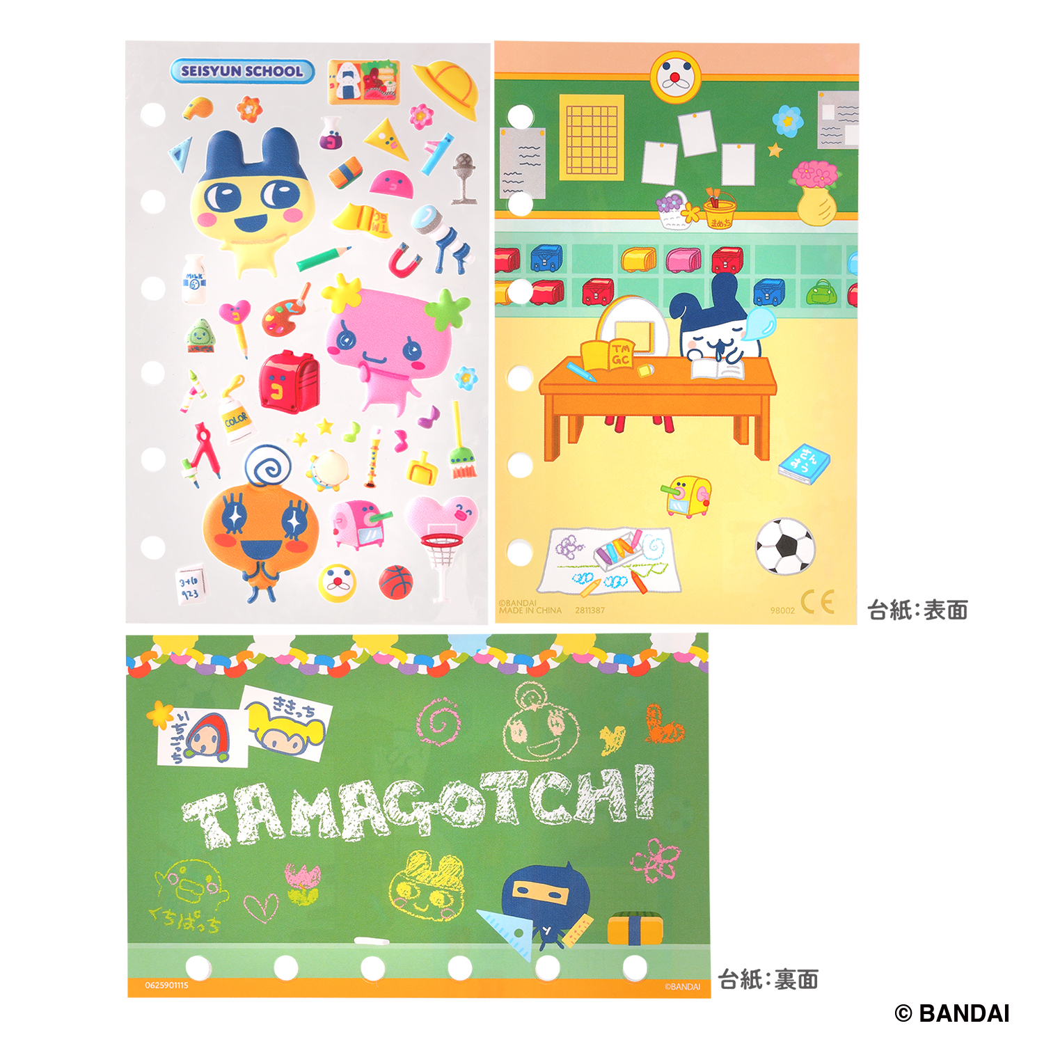 たまごっちのシールや台紙にアイテムのシールを重ねて自分流にアレンジする「たまもり」が楽しめる、貼ってはがせるぷっくりシールと台紙のセット!