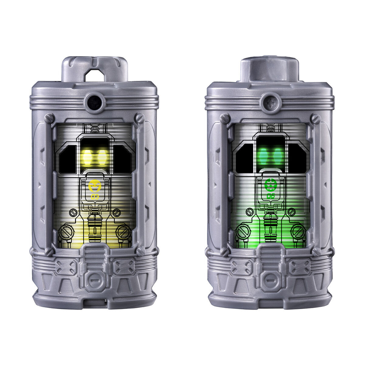 『超宇宙刑事ギャバン インフィニティ』にて登場する電池型アイテム「エモルギア」のセット第4弾です。カンキーエモルギーは天面パーツを押すことで絵柄が3種類にチェンジ、ヤーダエモルギーは天面パーツを回転させることで絵柄が2種類にチェンジします。別売りのDXギャバリオントリガーに装着するとそれぞれ固有音声・発光を楽しめます。