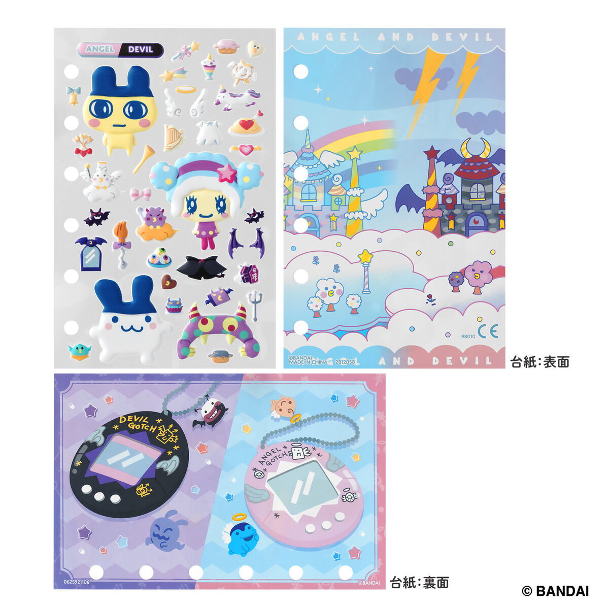 たまごっちのシールや台紙にアイテムのシールを重ねて自分流にアレンジする「たまもり」が楽しめる、貼ってはがせるぷっくりシールと台紙のセット!
