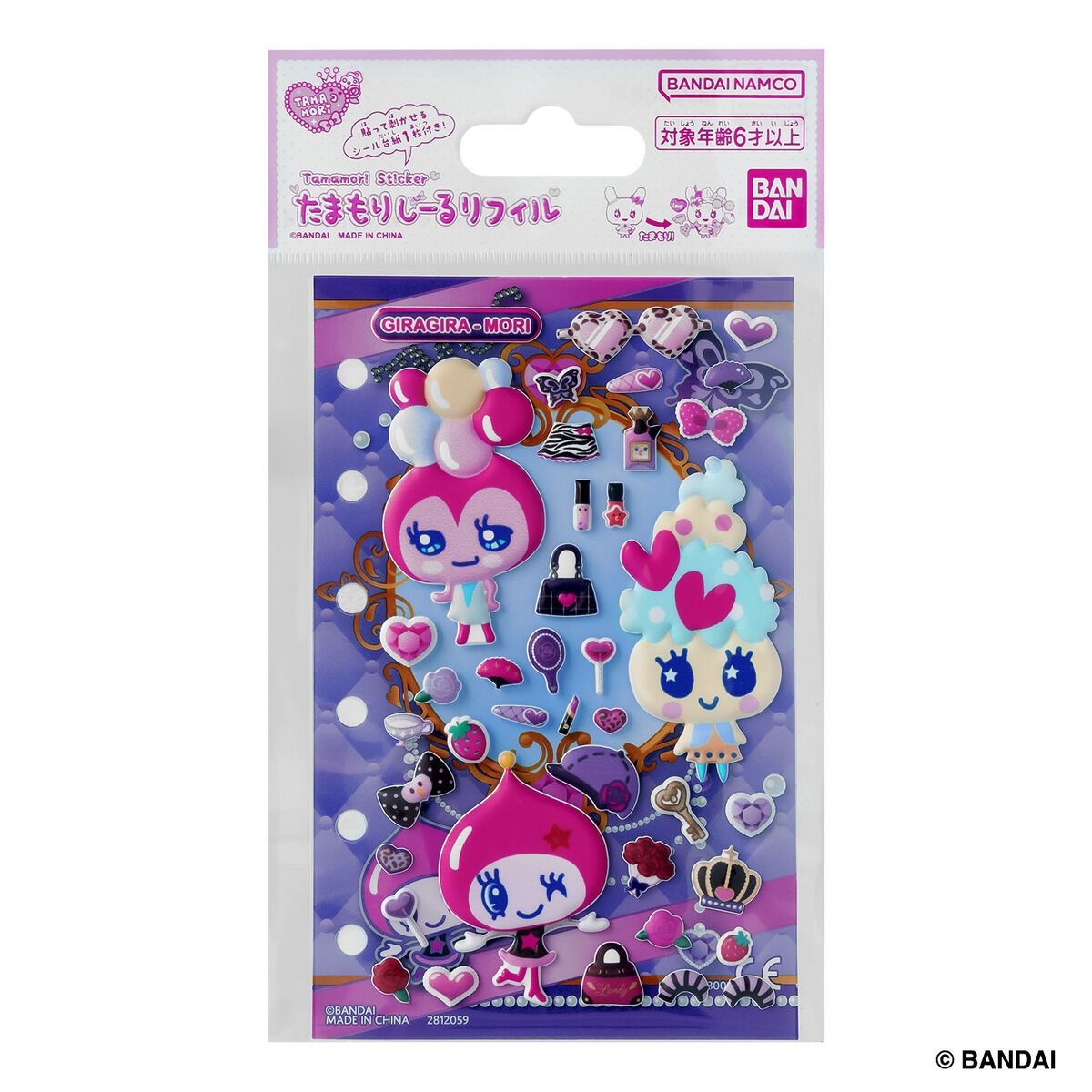 たまごっちのシールや台紙にアイテムのシールを重ねて自分流にアレンジする「たまもり」が楽しめる、貼ってはがせるぷっくりシールと台紙のセット!