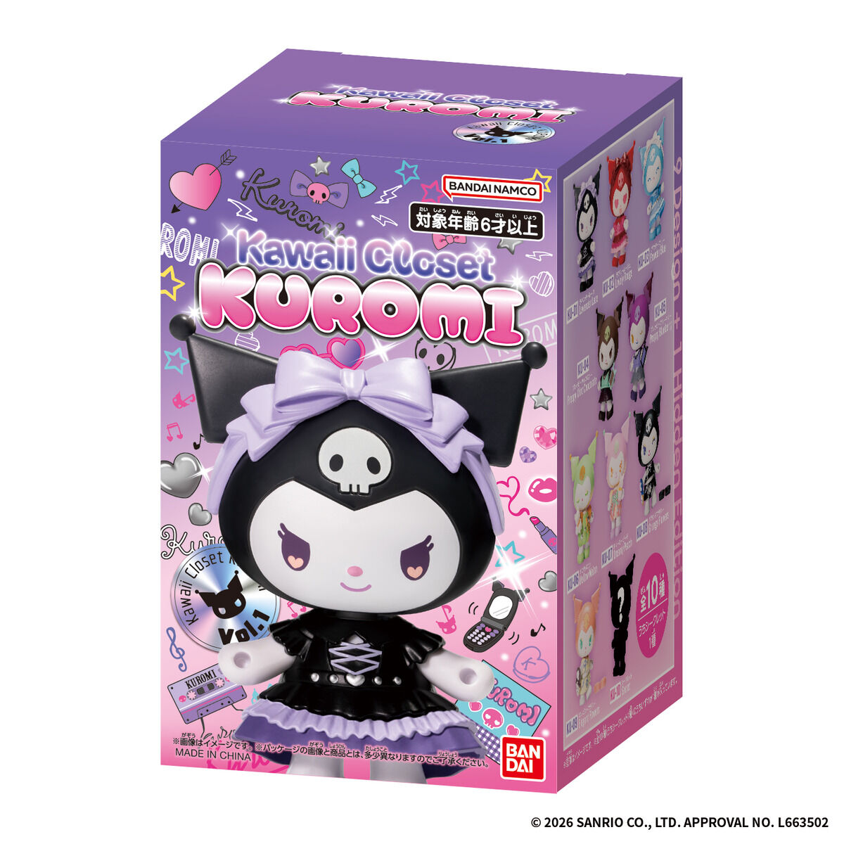 こんなクロミちゃん見たことない?!ファッショナブルな衣装デザインやポップな色使いが特徴のクロミちゃんのドールです。服やアクセサリーはお着がえができて、ポーズをとらせることもできます。約90mmの大き目なサイズ感で存在感も抜群!どれがでるかは開けてからのお楽しみ♪