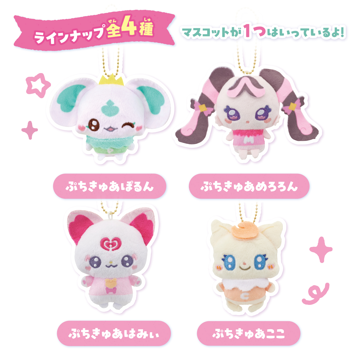ぷちきゅあのかわいいイニシャル付きお洋服を着たボールチェーン付きマスコットです。