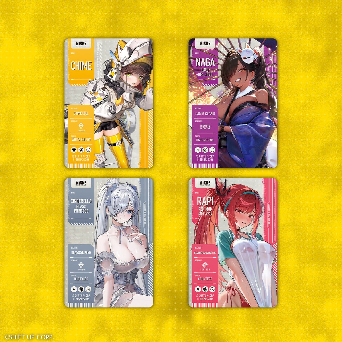『勝利の女神:NIKKE』からメタリックパスコレクション第4弾が登場!表面は圧倒的な美麗グラフィックの公式イラストを使用したプロフィールカード仕様、裏面はキラっと光る豪華仕様で、全種集めたくなること間違いなし!!超美麗な公式イラストを使用した思わず持ち歩きたくなるかっこいいデザインです。