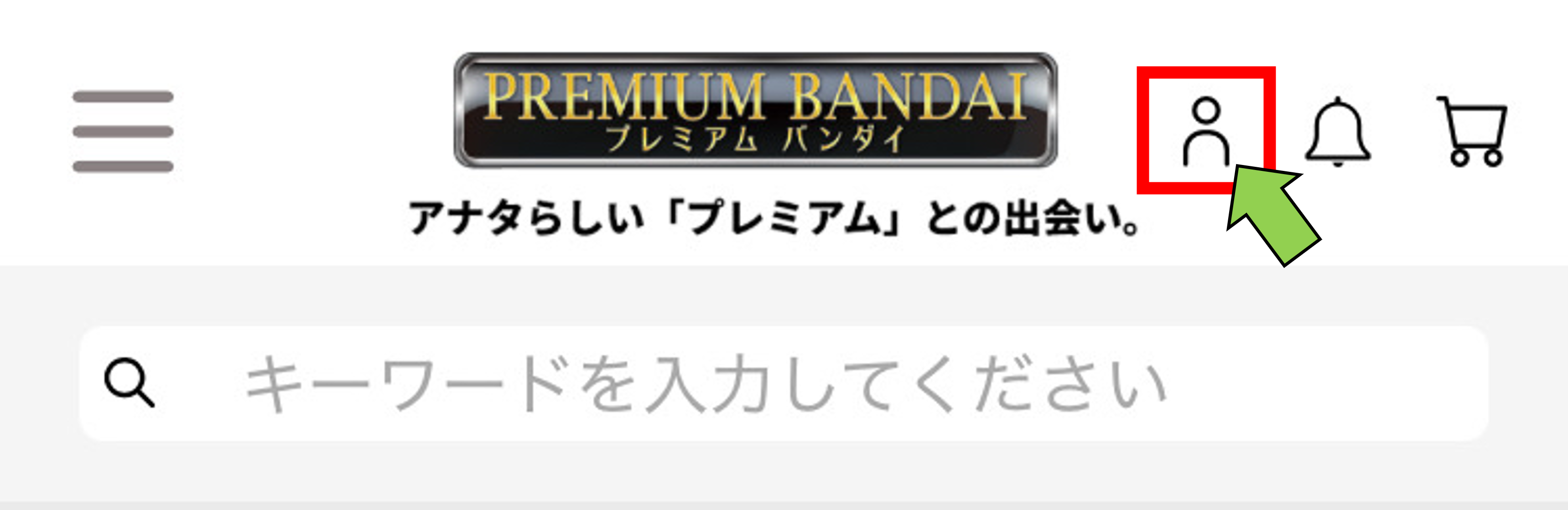 1. Tap "My Page" on the top right of PREMIUM BANDAI top page.