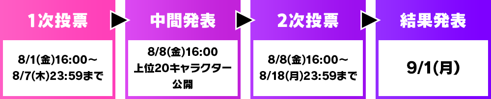 - ※1次投票・2次投票それぞれの3回のうちで、同じライダー/フォームへの同一端末からの投票は不可