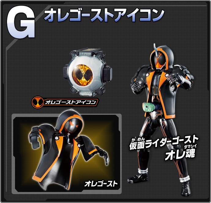 仮面ライダーゴースト オレ魂に変身できる!仮面ライダーゴーストの基本フォーム。姿を消したり、宙を舞い、不思議な力で戦うぞ!