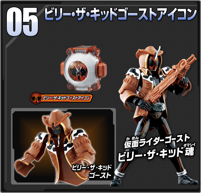 仮面ライダーゴースト ビリー・ザ・キッド魂にゴーストチェンジ!ガンマン「ビリー・ザ・キッド」の力を使って、目にも止まらぬ早撃ちで戦うぞ!