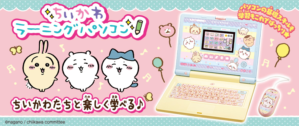 「ちいかわラーニングパソコン」は、基礎科目からプログラミング学習まで幅広い学習メニューをちいかわと一緒に楽しく学習できます。