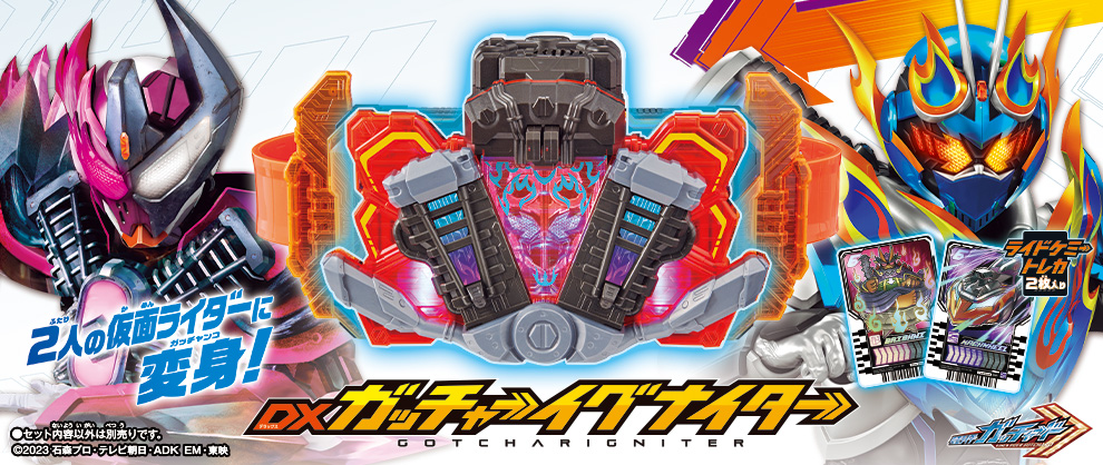 「DXガッチャーイグナイター」は、別売りの「変身ベルト DXガッチャードライバー」にセットすることで2人の仮面ライダーに変身できるアイテムです!