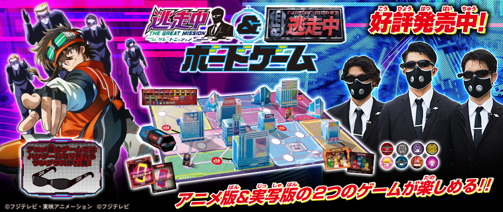 「逃走中ボードゲーム」は、アニメ版&実写版、2つの『逃走中』の世界観を楽しむことができるボードゲームです!
