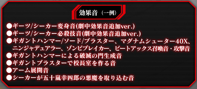 それが今回、メモリアルとしてギーツ用、シーカー用の劇中音声をふんだんに収録するので、更にプレイバリューはUPする予定です。