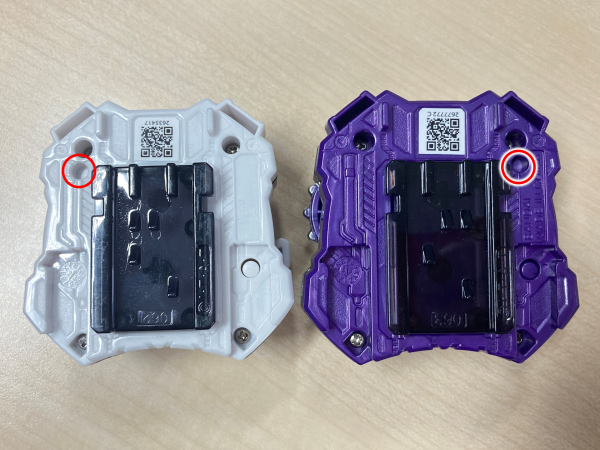 というのも、DXをお持ちの方ならご存じかもしれませんが、パワードバックルは写真のように3つの検出ピンを押す/押さないことでウエポンバックルを認識していました。