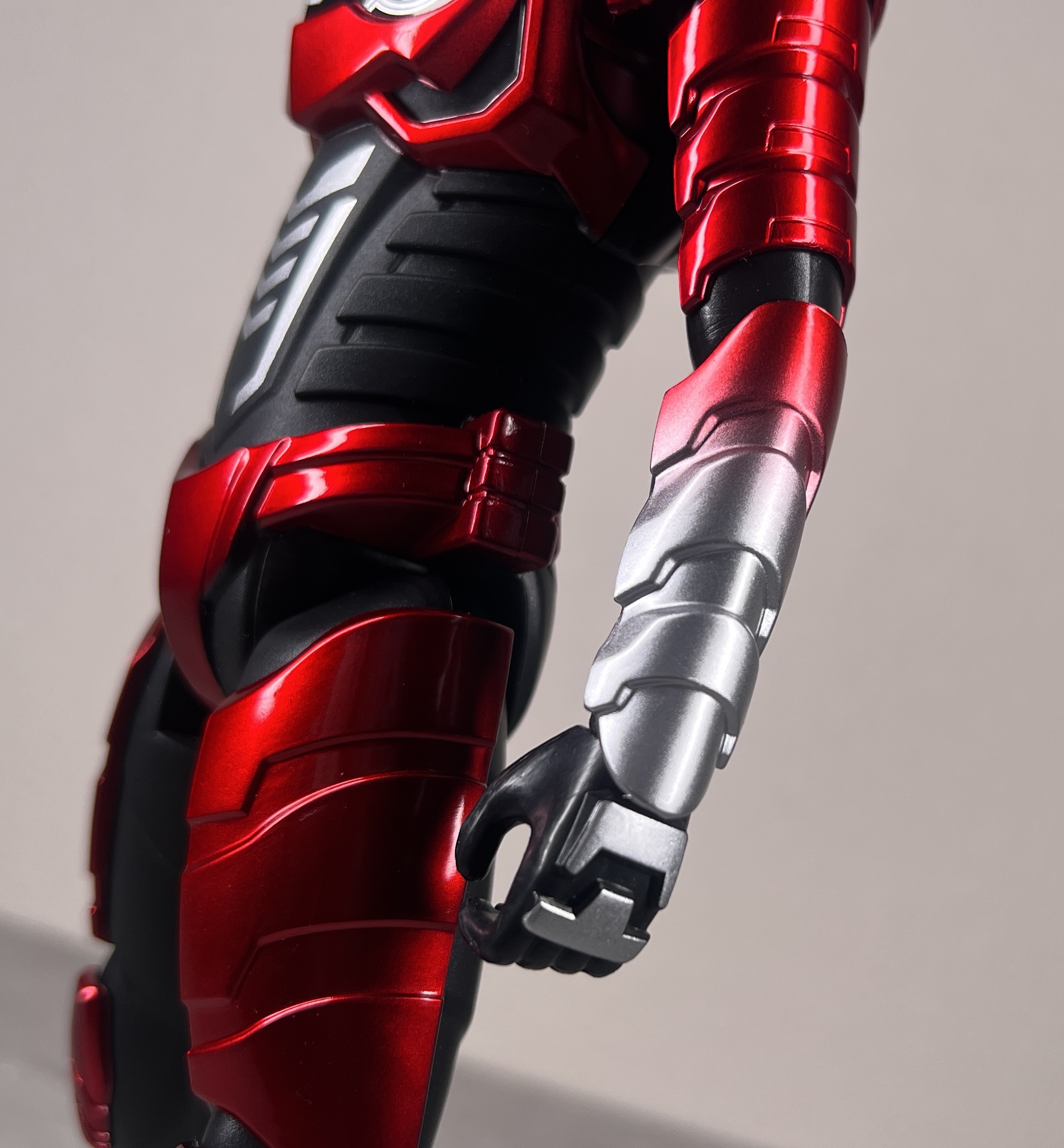 高級感を感じるマットな黒いアンダースーツに、上品なメタリックアーマーが美しいフィギュア